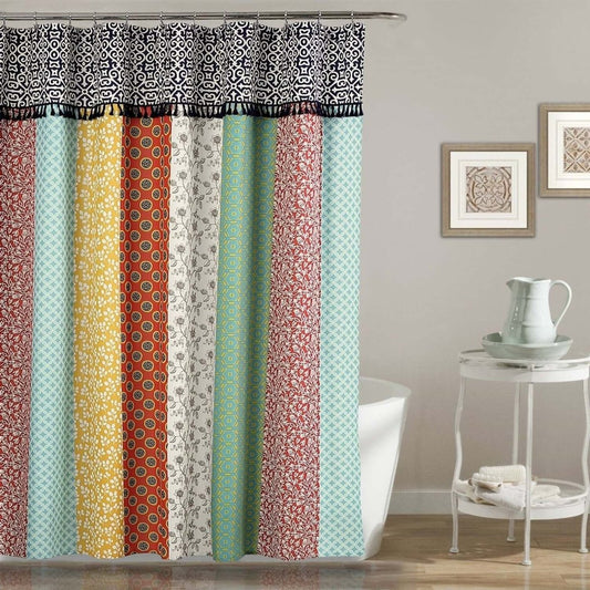 72-in. Bohemian Floral Multi-Color Patchwork Polyester Shower Curtain