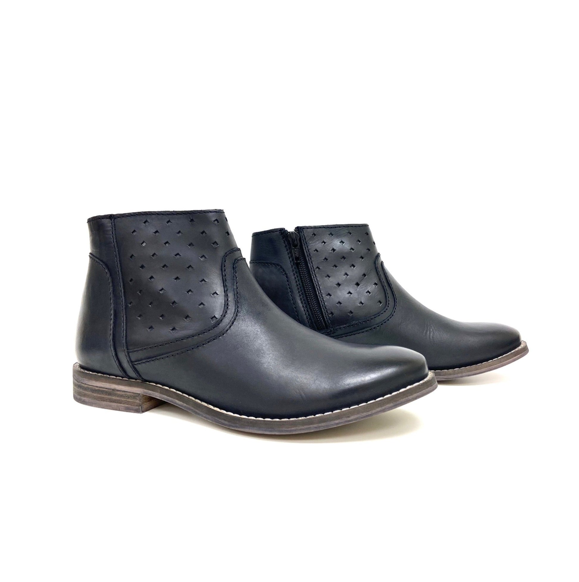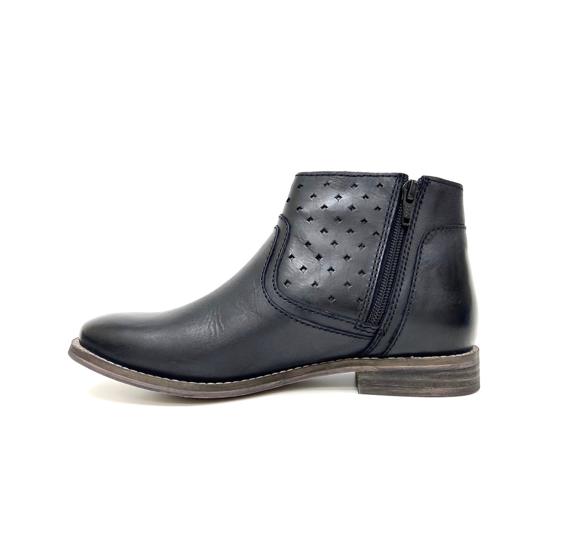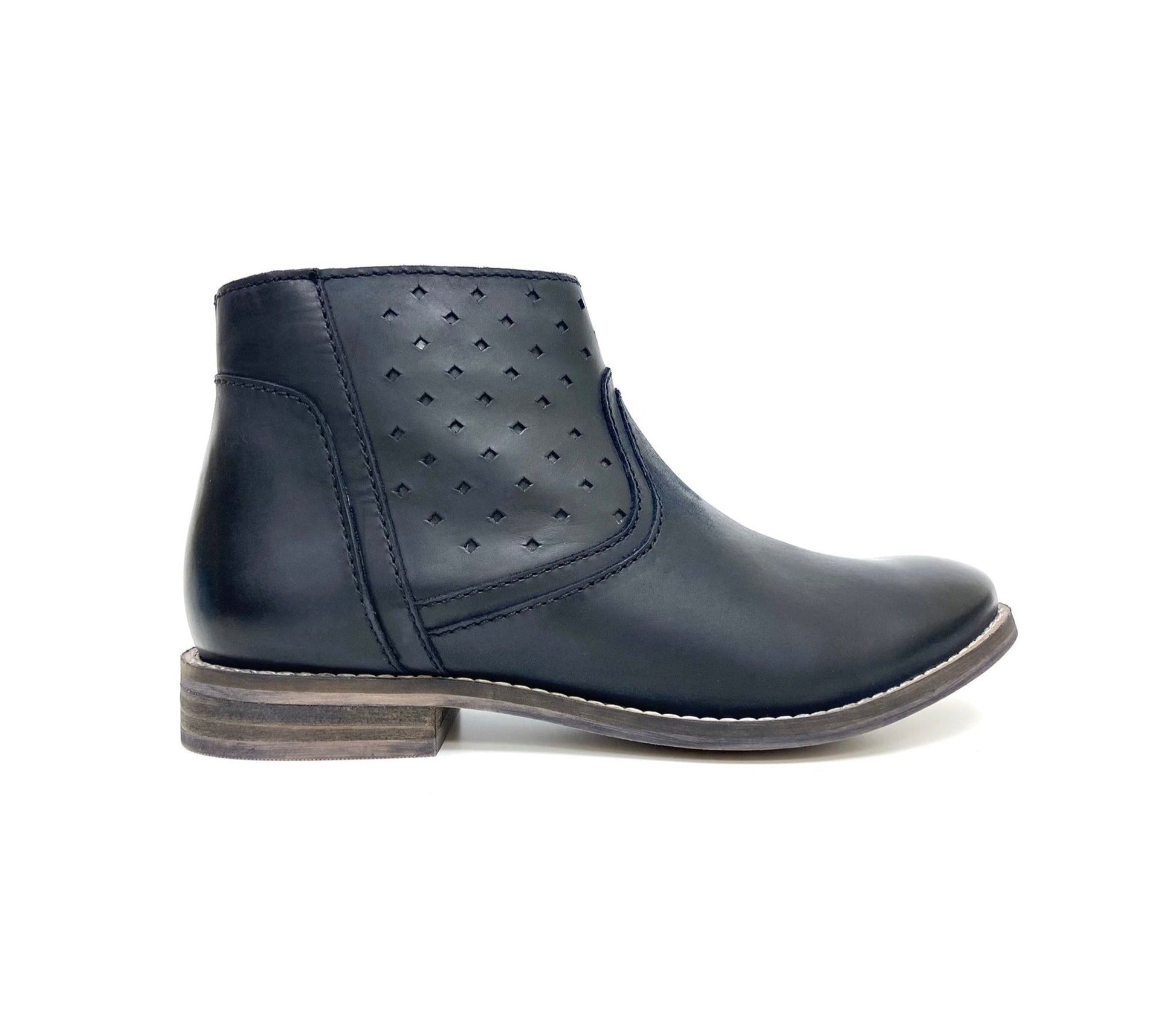 Transition into cooler temperatures wearing these short ankle booties crafted with perforated accents, stacked low block heels, side zippers and cushioned footbeds to support your days with comfort while complementing your daily casual wear.