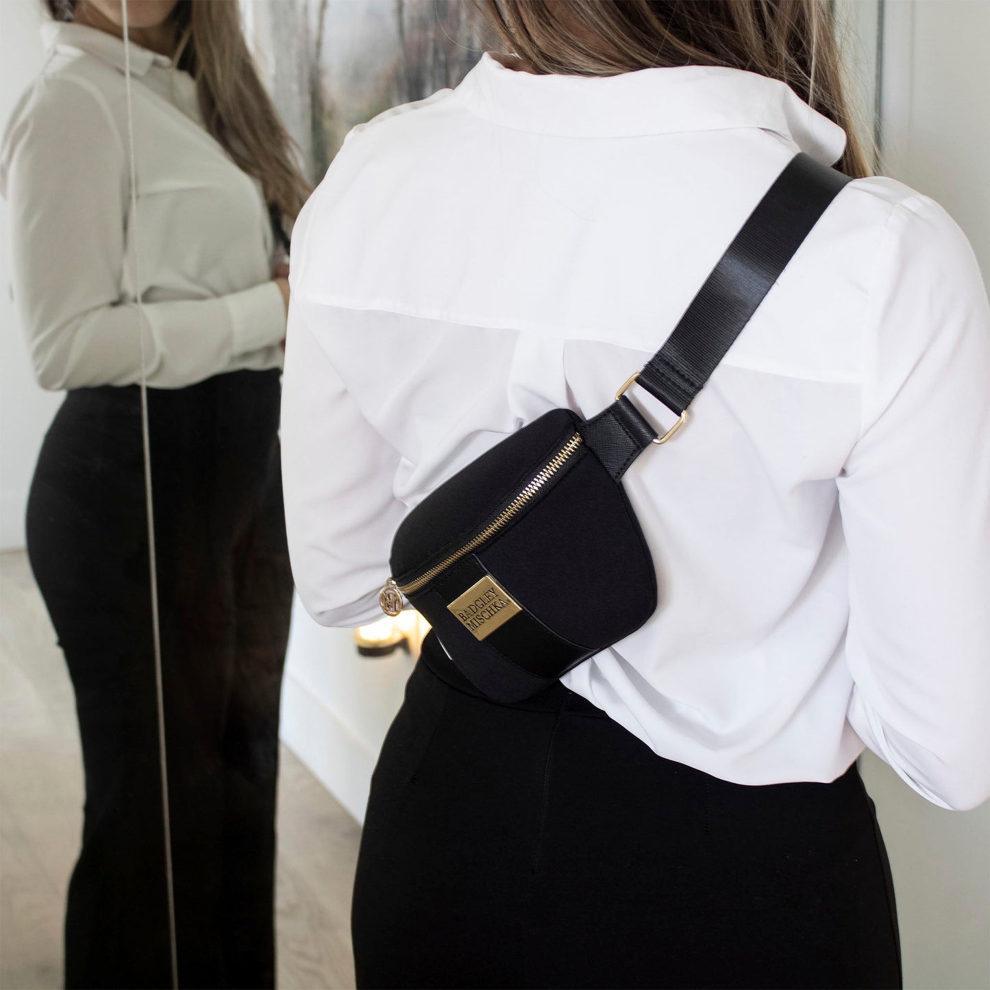 Step up your travel style game with our streamlined and sleek belt bag, perfect for your next adventure. Our versatile and durable bag is made of high-quality Saffiano vegan leather materials and neoprene that are water-resistant and always in style.