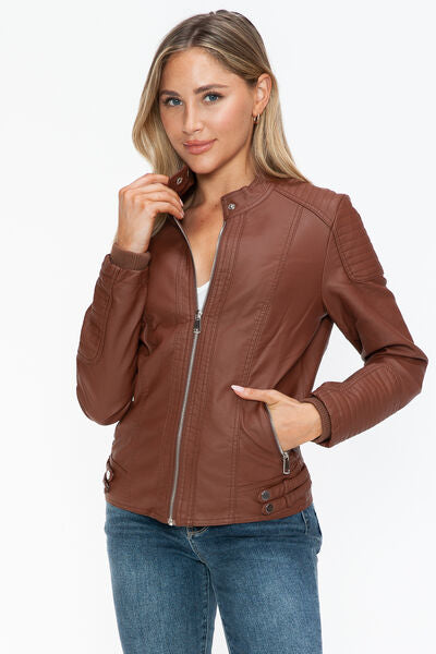 Snobbish Faux Leather Biker Jacket with Side Zip Pockets